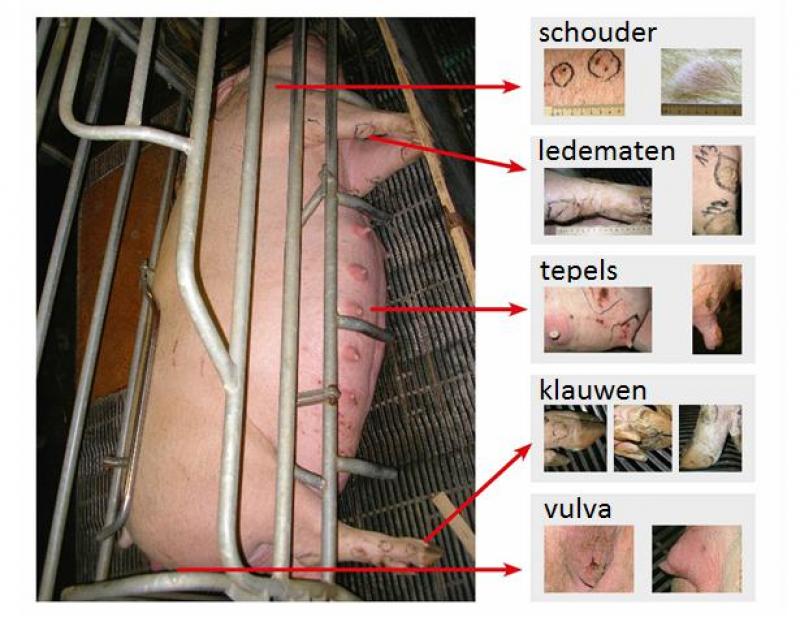 Kwetsuren veroorzaakt door de zeugenboxen/-kooien