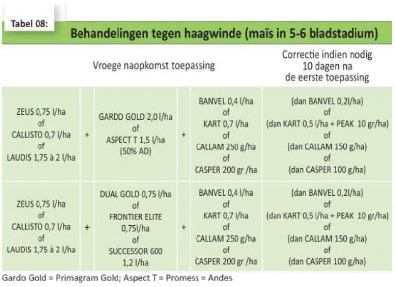Haagwinde, knolcyperus en aardappel-, witloof- en cichoreiopslag zijn zaken die je ook liever niet ziet in je maïsveld. Ook hiervoor zijn er oplossingen op de markt. Er zijn echter ook nieuwe uitdagingen. De komst van sulfonylurea-resistent raaigras in enkele percelen bezorgt landbouwers wat kopzorgen.