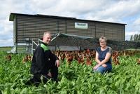 ... een volwaardig dieet van legmeel. Toch plukken de kippen de weide kaal, wat voor donkerdere eierdooiers zorgt.