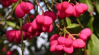 Euonymussoorten worden niet geplant voor de spectaculaire bloei, wel voor de bladkleur, de herfstkleur, de specifieke kurklijsten op de takken en natuurlijk voor de opvallende vruchten. De Kardinaalsmuts of Euonymus europaeus is een bij ons inheemse, bladverliezende soort die tot 4 m hoog wordt. Euonymus groeit op vrijwel alle grondsoorten, met een voorkeur voor eerder kalkrijke gronden, en doet het goed ongeacht zon of schaduw. In mei bloeit de struik met onopvallende wit-groene bloemen, maar ze is in het najaar overdekt met blinkend rozerode vruchten, die bij het opengaan oranje zaden laten zien. De 4-lobbige zaden lijken op een kardinaalshoed, wat meteen ook de ietwat vreemde benaming van deze plant verklaart.