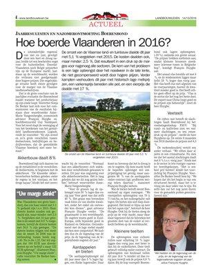 “Zowel de plantaardige als de dierlijke productie laat een omzetdaling van 5 % optekenen. De daling van de directe kosten beperkte zich tot de helft daarvan. Traditioneel springen de veevoeders eruit als grootste directe kost (48 %) voor een totaal van 2 miljard EUR. Na 2013 zijn de prijzen voor veevoeder jaar na jaar naar beneden gegaan. Dat is goed voor de veehouders, maar nadelig voor de akkerbouwers.”