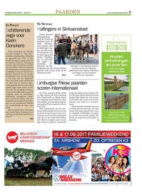 Nele Vanderlocht met de stermerrie Hylke Jetske kwamen in beide proeven van niveau L2 als overwinnaar uit de bus. Een prachtprestatie met zo een sterk deelnemersveld. Met de hoogste score van de dag, wisten ze zelfs een aantal dekhengsten achter zich te houden. Nele’s leerlinge Minke Bosch met haar hengst Tigo deden het ook prima. Zij werden ook in één van de twee proeven van niveau L1, overwinnaars.