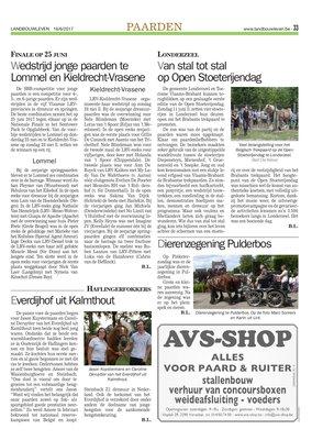 De zon was van de partij en de paarden waren mooi opgeknapt. Klaar om paardenliefhebbers te ontvangen. De bezoekers maakten zeker gebruik van de uitgestippelde wandelroute tussen de stoeterijen Diepensteyn, Mienenhof, ’t Groenenveld en ’t Snepke. Jong en oud kon kennismaken met een stukje levend erfgoed van Vlaams-Brabant: de Brabantse trekpaarden. Zo stonden bijvoorbeeld een huifkartocht, een ponyritje, een wedstrijd touwtrekken, een rondleiding in de stallen, demonstraties hoefijzers maken, mennen en dressuur op het programma. Maar ook veulens en Shetlanders lieten zich graag bewonderen. Wie dus van stal tot stal ging, kon iets bijleren over het leven achter de schermen van een stoeterij en over de veelzijdigheid van het Brabants trekpaard. Het hoogtepunt van de Open Stoeterijendag was misschien wel de komst van authentieke koetsen, met volledig uitgedoste bemanning. Kortom, dankzij het mooie weer, de uitvoerige promotiecampagne en de gevarieerde activiteiten kwamen zo’n 3.500 bezoekers langs in Londerzeel. Het was een boeiende dag.
