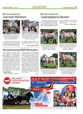 Bij de mannelijke springveulens: Rigoureux van de Sprietmolen (Untouchable x Flipper d’Elle), fokker Kristof Hanssens uit Nevele; vrouwelijke springveulens: Riante van ’t Recht Eind (Toulon x Last Man Standing), fokker Daniël en Karine d’Haese-Van Damme uit Eksaarde; mannelijke dressuurveulens Risk it All van de Guldennagel (Indian Rock x Johnson (ex Verdi V), fokker Stijn Thijs uit Vissenaken en vrouwelijke dressuurveulens: Rendez vouw van het Bloemenhof (Franklin (ex Fierce) x Diamaond Hit), fokker Isolde Tuypens uit Lier.