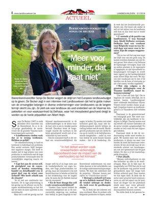 “We mogen nooit van tevoren de strijd al opgeven. De strijd voor het behoud van het budget zal bikkelhard zijn. Tegelijk moeten we realistisch zijn: de omvang het budget staat altijd onder druk. Het Europees budget in het algemeen staat altijd onder druk. Het Verenigd Koninkrijk verlaat als nettobetaler de unie, er zijn massa’s nieuwe uitdagingen en ik zie bij de andere lidstaten weinig bereidheid meer te betalen.Als je dan bedenkt dat het GLB ongeveer 38 procent uitmaakt van het totale EU-budget dan weet je dat het geen evidentie is dat het landbouwbudget gelijk blijft. Maar we moeten ervoor vechten. Zoals ik al zei: meer eisen voor minder geld: dat kan niet.”