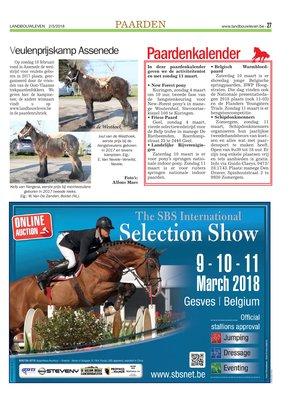 Zaterdag 10 maart is er showdag jonge Belgische springpaarden, BWP Hoogstraten. Die dag vinden ook de Nationale presentatiedagen 2018 plaats (ook 11-03) en de Flanders Youngsters Trials. Zondag 11 maart is er hengstencompetitie.