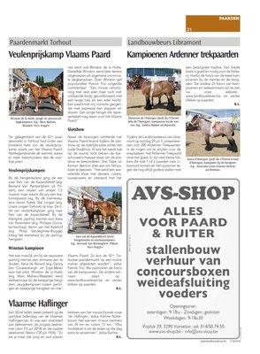 Tijdens de Landbouwbeurs van Libramont op zondag 29 juli ll. presenteerden zich 200 Ardenner Trekpaarden in de ringen om te strijden voor de ereplaatsen. Het Ardenner Trekpaard doet het goed. Er zijn veel kleine fokkers die met 1 of 2 paarden naar Libramont komen en het opnemen tegen de nog altijd grotere stallen met een belangrijke traditie. Een brede basis is goed en nodig voor de fokkerij. Hierbij de foto’s van de twee kampioenen bij de merries en de hengsten. De andere 25 foto’s van kampioenen en reekswinnaars zijn te zien via onze website: www.landbouwleven.be en verder klikken op paarden.