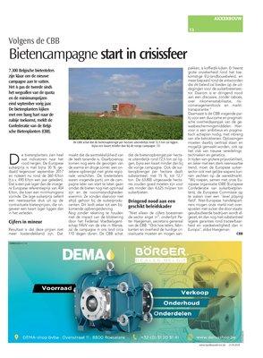 Nog zonder rekening te houden met de impact van de blokkering door het Federaal Voedselagentschap FAVV van de site in Wanze, zal de campagne in ons land circa 110 dagen duren. De CBB schat dat de bietenopbrengst per hectare uiteindelijk rond 72,5 ton zal liggen, bijna een kwart minder dan bij de vorige campagne. Ook de suikeropbrengst per hectare daalt substantieel, met 15 %, tot 12,7 ton. De 63.800 uitgezaaide hectares zouden goed moeten zijn voor iets minder dan 4,625 miljoen ton suikerbieten.
