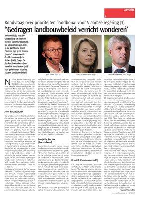 Iedereen kijkt met belangstelling uit naar de nieuwe Vlaamse regering. De uitdagingen zijn ook in de landbouw groot. “Kansen zijn geen bedreigingen.” In een eerste deel formuleren Joris Relaes (ILVO), Sonja De Becker (Boerenbond) en Hendrik Vandamme (ABS) hun prioriteiten voor het Vlaams landbouwbeleid.