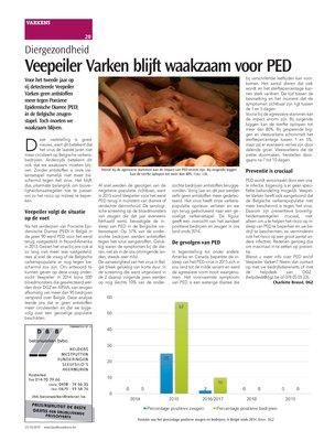 Na het verdwijnen van Porciene Epidemische Diarree (PED) in België in de jaren 90 werd PED voor het eerst terug vastgesteld in Noord-Amerika in 2013. Gezien het virus bij ons ook al zo lang niet meer was vastgesteld, rees al snel de vraag of de Belgische varkenspopulatie er nog tegen beschermd zou zijn. Om antwoord te kunnen geven op deze vraag onderzocht Veepeiler in 2014 bijna 500 bloedmonsters die geselecteerd werden door DGZ en ARSIA, van zeugen afkomstig van meer dan 90 bedrijven verspreid over België. Deze analyse leerde ons dat er geen antistoffen meer circuleerden en dat we bijgevolg over een gevoelige populatie beschikten.