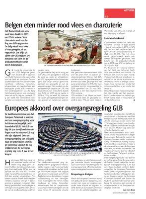 De gemiddelde Belg kocht vorig jaar ook 8,4 kg vers gevogelte en wild, 4,6 kg verse vis, week- en schaaldieren en 0,35 kg vegetarische vleesvervangers. Op lange termijn groeit het aandeel van gevogelte en van de vleesvervangers. Het aandeel van deze laatste blijft beperkt tot 1,1%. Het thuisverbruik van charcuterie daalde met 0,6% tot 10,05 kg per capita in 2019 of 193 g per week. Bij charcuterie blijven gevogeltebereidingen verder groeien ten nadele van paté en kookwaren.