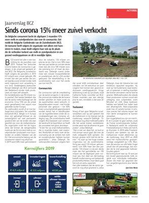 De coronacrisis rijdt de ontwikkeling van de sector enigszins in de wielen. De coronacrisis maakte dat de horeca werden gesloten en meer zuivel via de supermarkten werd verkocht. In bepaalde weken moest – met minder personeel dan gewoon – tot 50% meer consumptiemelk geproduceerd worden terwijl het in standhouden van de logistieke keten onder de coronabeperkingen een immense uitdaging was. De zuivelindustrie heeft volgens BCZ bewezen over voldoende veerkracht te beschikken en heeft de coronatest met glans doorstaan.