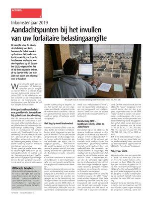 Premies op basis van de betalingsrechten, de basisbetaling (vermeerderd met een premie voor vergroening en met de premie voor jonge landbouwers) en de zoogkoeienpremies moeten wel bovenop de SBW worden aangegeven. Deze premies genieten van het verlaagd tarief van 12,5%. De VLIF-steun die de landbouwers ontvangen in 2019 – in eigen hoofde of via hun financiële instelling - zijn vrijgesteld van belasting.