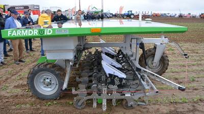 De Farmdroid is een volledig autonome machine die in diverse gewassen (suikerbieten, cichorei, uien, spinazie, maïs, bonen…) zelfstandig kan zaaien en wieden, zonder menselijke begeleiding. Ze combineert een zaaibewerking met het schoffelen. Bij het zaaien wordt de gps-locatie van elk zaadje vastgelegd in de machine. Zo weet die enkele dagen of weken later tot op 8 mm nauwkeurig waar elk zaadje ligt en waar er wel en vooral niet geschoffeld kan worden. De robot werkt dankzij zonnepanelen volledig elektrisch op zonne-energie en kan tot 20 ha zelfstandig onderhouden. Je kan hem ook uitbreiden met een spuittoestel, zodat je precies net tussen of op het gewas kan spuiten; denk bij suikerbieten bijvoorbeeld aan een insecticidetoepassing. Verder kan hij schoffelelementen van 4 tot 12 rijen uitvoeren. De machine is in een drie- of vierwieluitvoering beschikbaar.
