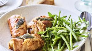 We voorzien 2 kalfsrolletjes per persoon, zorg er dus voor dat je elk rolletje kan voorzien van een stukje peer en geitenkaas.